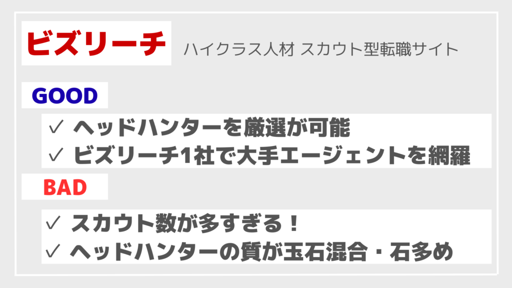 ・ビズリーチ1社で大手転職エージェントを網羅できる