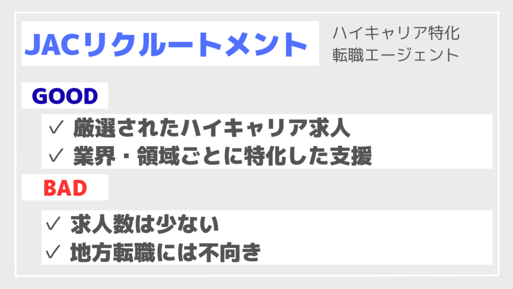 詳細は【体験談】30代大企業社員がJACリクルートメントで内定ゲット!をご覧ください。