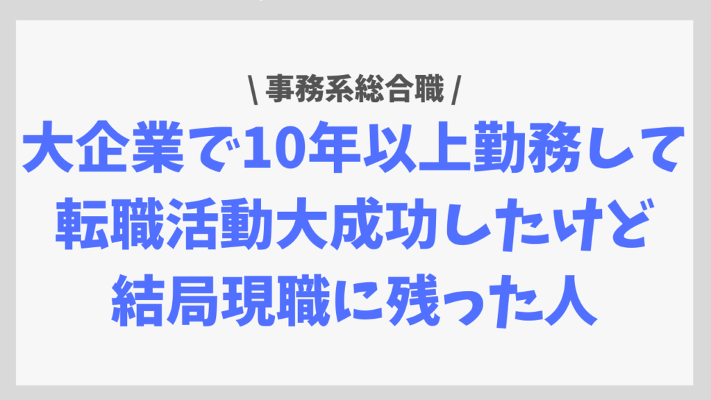 大企業勤務歴10年以上×転職活動大成功。だけど結局現職に残った人|事務系総合職
